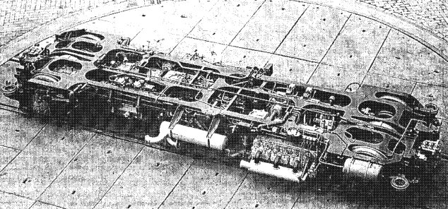 Die Abbildung des Fahrwerks eines Zahnrad-Schienenbusses der Baureihe VT 97 zeigt, daß es schon auf dem Stand der Technik zu Beginn der sechziger Jahre möglich war, ein Fahrwerk mit platzsparendem Unterflurantrieb für kleine Eisenbahnfahrzeuge zu realisieren, das, mit einem moderneren Motor und Getriebe ausgestattet, fast unverändert auch für einen fahrerlosen Gütertriebwagen Verwendung finden könnte. [329]